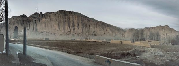 التقطت صورة بانورامية لتماثيل بوذا الحجرية في باميان. على الرغم من أنه تم تصويرها في الوضع البانورامي، إلا أنه لم يكن من الممكن التقاط المظهر الكامل لبوذا الحجري الكبير وبوذا الحجري الصغير. على الطريق المعبدة أمام تمثال بوذا الحجري، كانت تأتي وتذهب شاحنات كبيرة، تنفث الغبار كما لو أن أعمال البناء جارية في مكان ما.