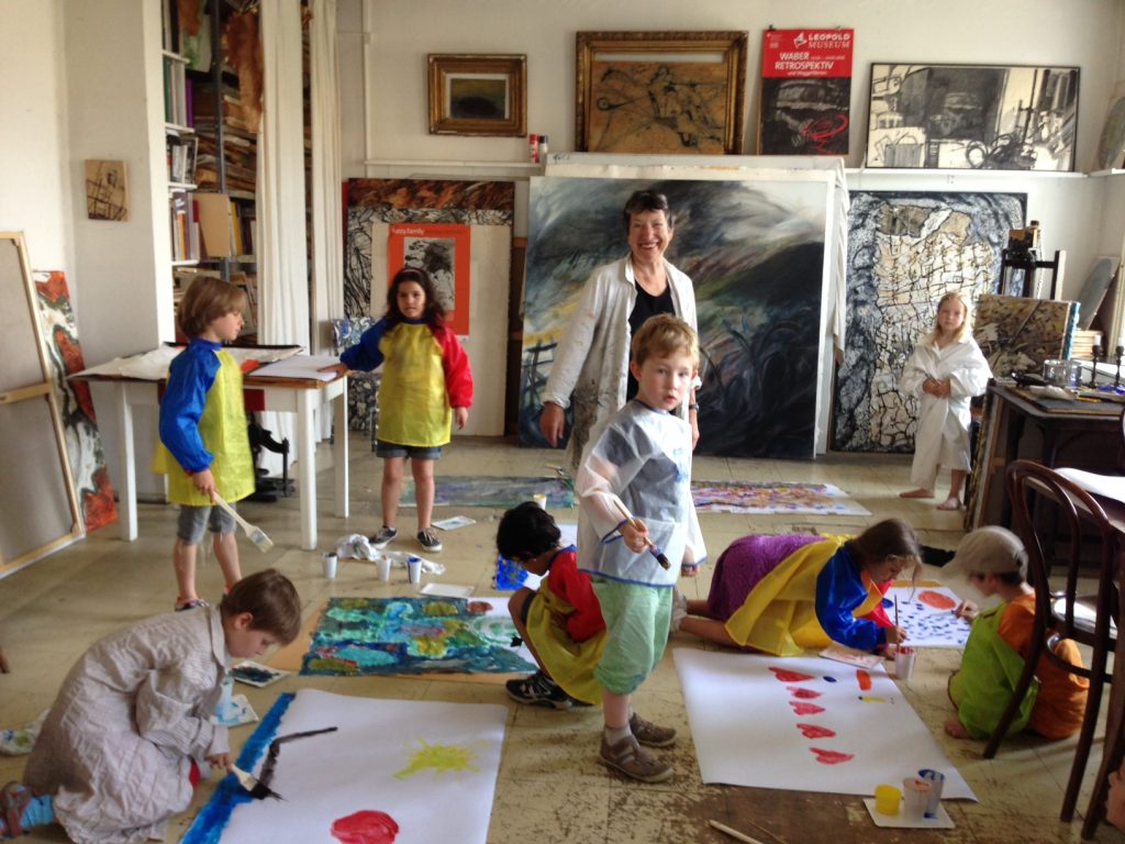 In 2019, four Austrian artists, including Linde Waber, Valentin Oman, Ona B., and Tania Raschied, traveled to the Dar Al-Kalima Gallery near Bethlehem to conduct workshops with young Palestinian artists. As part of this initiative, an exhibition was also held at the Dar al-Kalima University College of Arts & Culture, under the theme: “Art for Peace – A Bridge between Vienna and Bethlehem.”