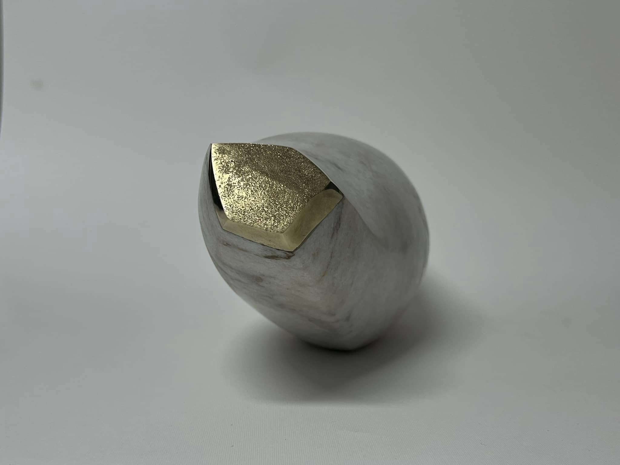 العمل الفائز مكوّن من قطعتين من حجر شديد الصلابة، خامة مرهقة جسديًا ونفسيًا للنحات، لكنها أيضًا مصدر سعادة غامرة عند لحظة الانتصار، حين ينجح الفنان في ترويضها وتطويعها لتنسجم مع مشروعه الفني والإنساني. ولم يكتف عصام بنحت الحجر الصلب، بل أضاف خامة أخرى تربط بين القطعتين، ليست مجرد رابط تقني، بل عنصر جمالي وفكري يزيد من بهاء العمل ويمنحه بُعدًا بصريًا وخياليًا يثري التلقي ويثير الأسئلة.