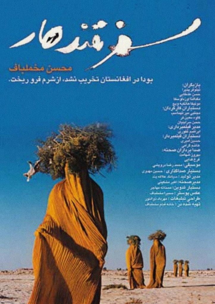 The Afghan protagonist wears a chador, pretending to be the fourth wife of an Afghan man, with only three days left to reach Kandahar before the eclipse. Makhmalbaf conducted extensive research for the film.