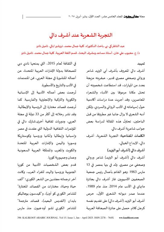التجربة الشعرية عند أشرف أبو اليزيد في مجلة كاليكوت الهندية