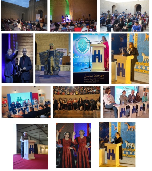 The festival’s continued successes and its large public turnout prompted UNESCO to send two congratulatory messages, the first in its sixth edition and the second in its eighth edition. The festival has also received praise from numerous cultural and artistic figures and various institutions, both locally and regionally. The festival presented its activities in the famous historical archaeological city of Babylon, whose theaters were in ruins and a dump, especially the large theater (5000) spectators, which was completely destroyed, especially its stage. The festival team cleaned and restored it to be suitable for major artistic events. brotherhood of humanity and its cultures, in which Babylon played a major role.