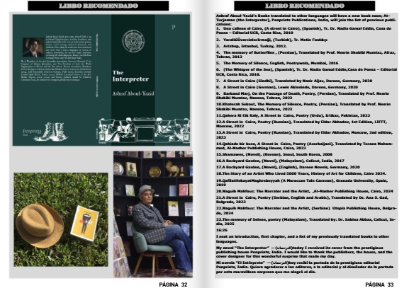 أصدرت المجلة الشهرية الإسبانية Esta Tierra عددًا جديدًا مميزًا، تضمن في صفحتيه (32-33) قائمة بأعمال الكاتب والروائي المصري أشرف أبو اليزيد المترجمة إلى لغات العالم المختلفة، مع صور مختارة من مسيرته. وقد بادر إلى هذا التكريم السيد Antonio José Caralps Sobr، رئيس تحرير المجلة، احتفاءً بصدور النسخة الإنجليزية من روايته «الترجمان» (The Interpreter) عن دار Penprints في الهند.