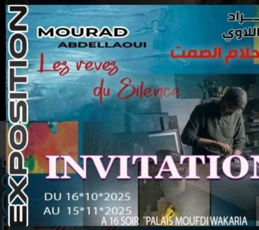 في قصر الثقافة مفدي زكرياء بالجمهورية الجزائرية ، تتفتح نوافذ اللون والروح على معرض الفنان التشكيلي مراد عبد اللاوي ، الذي اختار لمعرضه عنوانا شاعريا يهمس من أعماق الصمت : ( أحلام الصمت ) . منذ الخامس عشر من أكتوبر 2025 وحتى الخامس عشر من نوفمبر ، تتماهى جدران القصر مع لوحات تستبطن ذاكرة الضوء ، وتعيد صياغة العلاقة بين اللون والوجدان ، بين الشكل والغياب .
