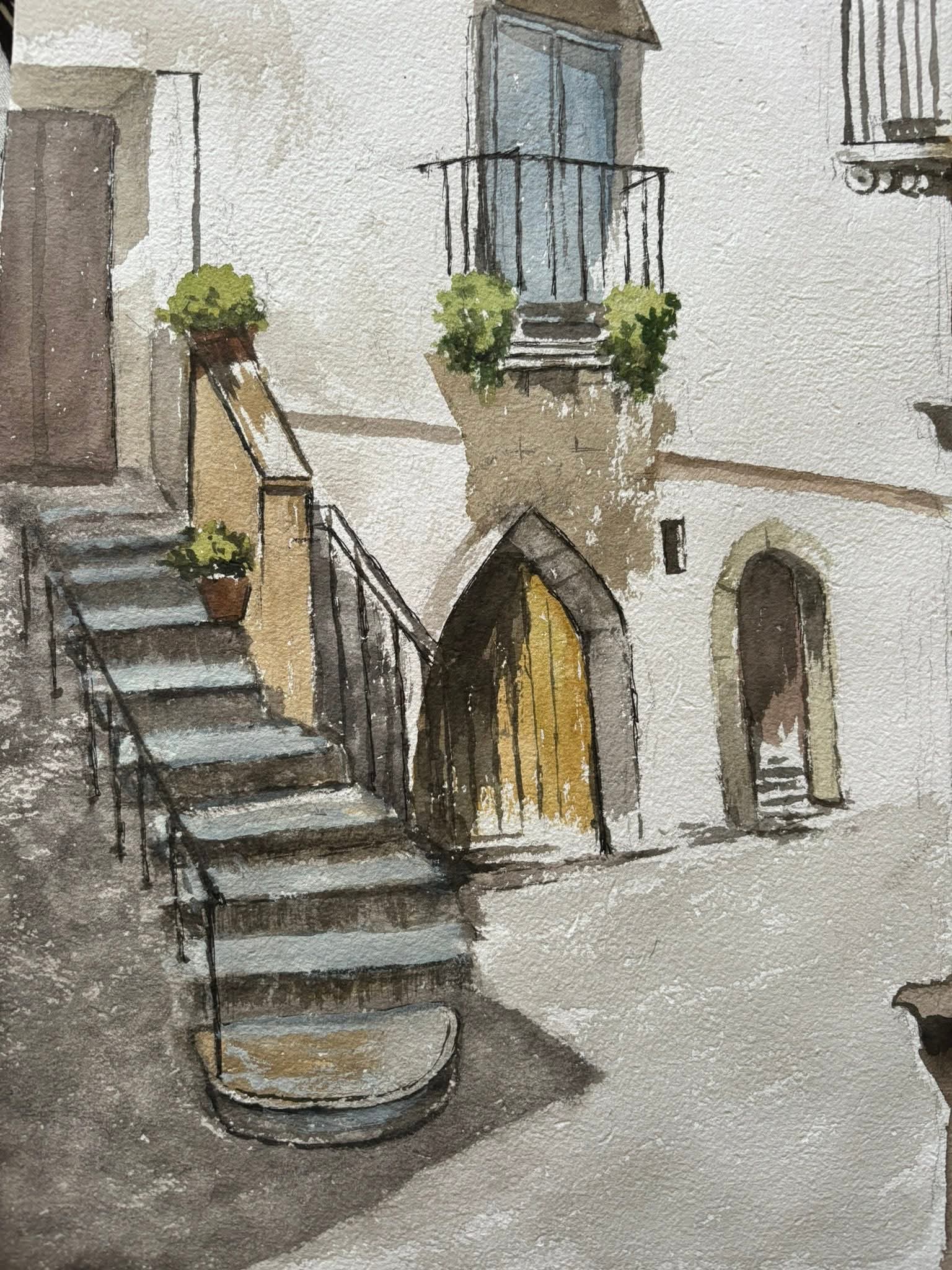 In essence, this painting transcends its setting. It evokes the delicate correspondence between the seen and the felt — where watercolor becomes memory, and the ordinary afternoon transforms into a quiet act of contemplation.