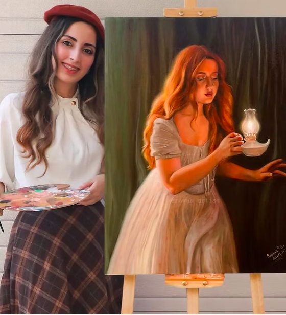 I began with dry media first, such as pencils, colored pencils, and pastels. Through them, I learned all the techniques I needed to draw portraits and realism with high precision and speed, mastering proportions and capturing likeness. I learned how to highlight things properly and trained my eyes to see accurately. Later, I moved to oil paints, which was the second stage of my artistic journey. The technique is completely different, as is the way of handling it. But because my foundations were strong, my first attempts went quite well, since my eyes already knew what the final result should look like. Over time, I learned about color theory, mixing, and all the other essentials. The reason I transitioned to oils is that they suit my vision better, my idea of spreading beauty, and they make it easier to add that dramatic atmosphere in my paintings through lighting and unique backgrounds that help tell the story behind the portrait. As Bob Ross once said, oils are very forgiving and easy to work with, which allows me to add or change things whenever I feel like it, unlike dry media, which are more limited by the initial sketch.