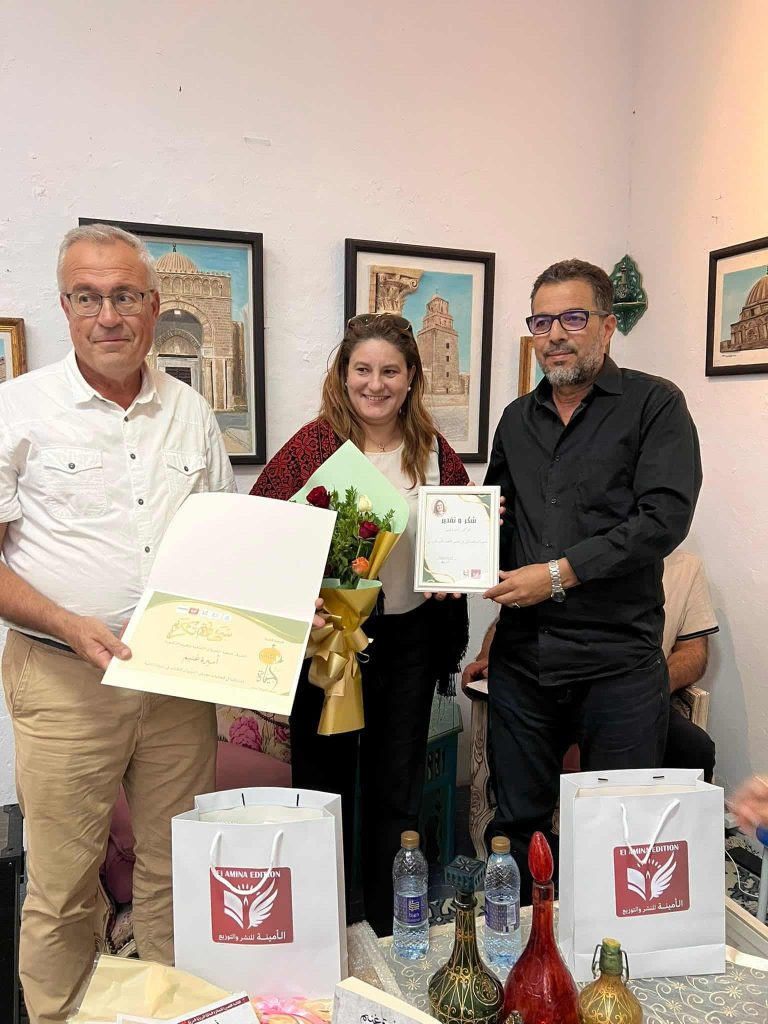 وبرمجت الهيئة المسيرة للدورة الثانية فقرات مميزة حضر فيها الشعر باللغتين فقرأ وأمتع كل من الشعراء خالد العلاني وعبد الرحمان الكبلوطي وسندة النجار وعلياء غربال وتم تكريم العديد من الكتاب ومؤسساتهم الراعية لهم والذين يحدثون الفرق كتابة ومتنا وحضورا وأصحاب جوائز ومنهم الدكتورة أميرة غنيم وصالون الهادي نعمان للإبداع بالمنستير والكاتبة هيام الفرشيشي ومنيرة الدرعاوي وعبد الكريم الحداد ورضا العياشي وليلى عطا الله وكوثر الرافعي وخالد الحافظي مع الحضور الخاص متنا ورؤية للكاتب الدكتور وليد العش وروايته” العقد الوردي” وكانت فرص للكتاب والحضور وللمقدمين الشارحين عرض الرؤى المختلفة في الكتابة واشكاليات السرد والمتابعة النقدية والكتابة تحت سقف المدارس الأدبية والقضايا الحضارية وغيرها من الاشكاليات والتي تواصل الحوار حول قضايا أخرى ضمن الحلقات التي ناقشت أيضا فسحة الخيال في أدب الأطفال واليافعين والتي ناقش العديد من جزئياتها الكتاب والكاتبات سهام الشريف ونور الدين بن بوبكر وهشام الهرابي وحلقة ثانية ناقشت اصلاح التعليم في تونس وأهميته اليوم وغدا لأنه محدد لطفل اليوم وطالب الغد وموظف وعالم بعد سنوات لتعود فلسطين مرة أخرى فبعد الأعمال الفنية والتشكيلية هاهي شهادات حية لبعض المشاركين في أسطول الصمود ومعها كلمات النائب محمد علي وغسان كلاي وفداء عثمني وسيرين الغرايري كما تم تكريم الصحفي محمد الربعي وبرمجت للأطفال العديد من حصص المطالعة وتعرفهم على قصص جديدة هكذا أسدل الستار على دورة مميزة تحضيرا وعرضا ودعوات لتراكم أنشطة هذه الجمعية التي اصبحت رقما جهويا ووطنيا لما تقدمه من أنشطة ثقافية وابداعية تنطلق من القيروان لتجذب إليها الأقلام الجادة والنصوص الخاصة متنا وفكرة في انتظار حلقات أخرى ومواضيع أخرى لهذه الجمعية التي يجب ان ننتبه إليها تشجيعا ودعما