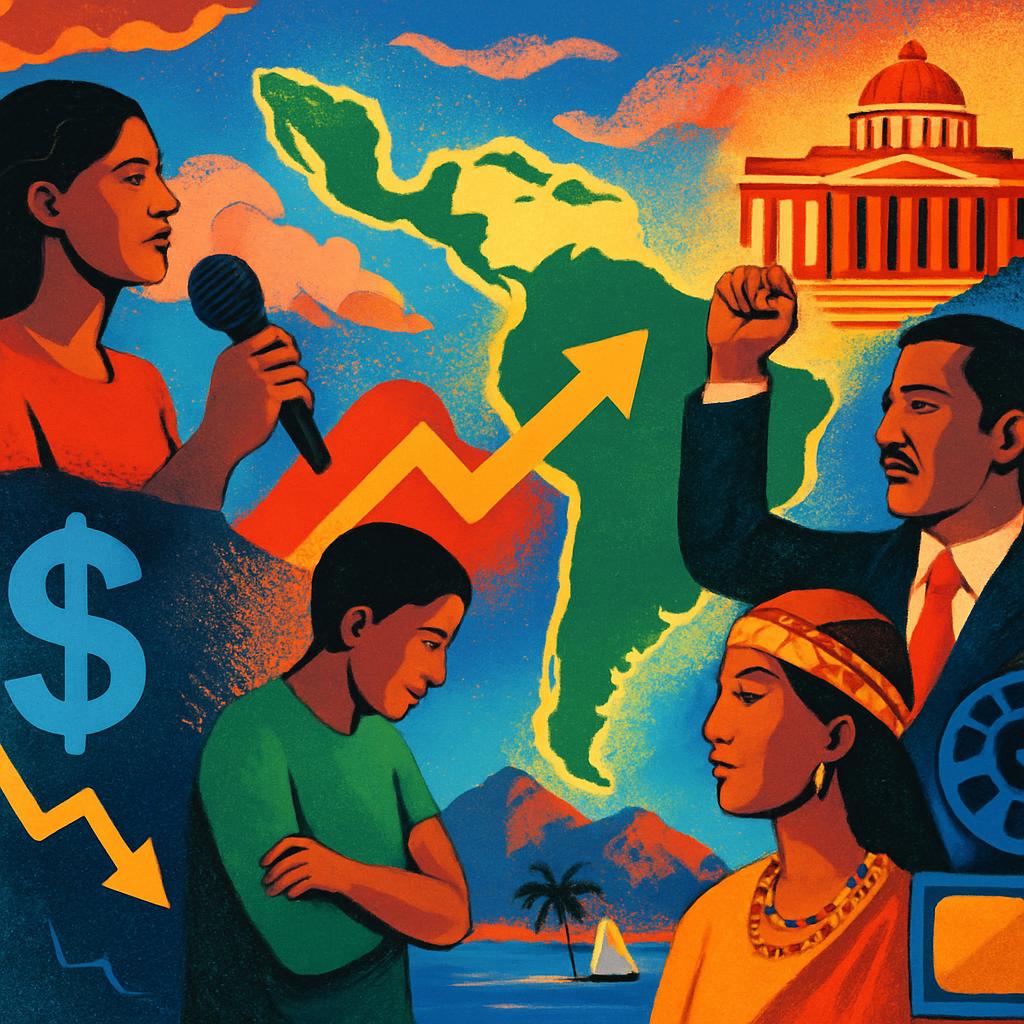 شهدت أمريكا اللاتينية هذا الأسبوع سلسلة من التطورات السياسية والاقتصادية والثقافية التي تكشف عن ملامح مرحلة جديدة تتشكل في المنطقة، حيث تلتقي الأزمات الاقتصادية بالتحولات السياسية الحادة، ويتقدم فيها الإعلام والثقافة كقوتين مؤثرتين في صياغة الهوية اللاتينية المعاصرة. وهذه الأحداث، عند النظر إليها مجتمعة، لا تبدو معزولة، بل جزء من لوحة كبرى تتداخل فيها مصالح القوى الدولية وصراعات الداخل.