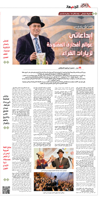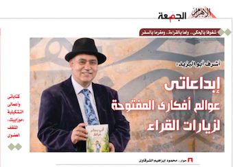 وفي حوار مع «الأهرام» يقول إن إبداعاته هي عوالمه التي صنع منها مزارات للقراء، ويرى أن كتاباته الشعرية والنثرية هي موزاييك المثقف العضوي الساعي لتنوير المجتمع، وإلى نص الحوار: