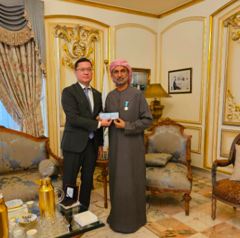 وسلّم سعادة السفير الوسام وشهادته الموقعة من فخامة الرئيس الكازخستاني للجروان خلال لقاء عقد بين الطرفين اليوم، ويأتي هذا التكريم تأكيداً على التقدير الرفيع الذي توليه القيادة الكازاخستانية لإسهاماته الفاعلة في نشر ثقافة التعايش السلمي، وترسيخ مبادئ الاحترام المتبادل، وتعزيز التقارب بين الشعوب والمجتمعات.