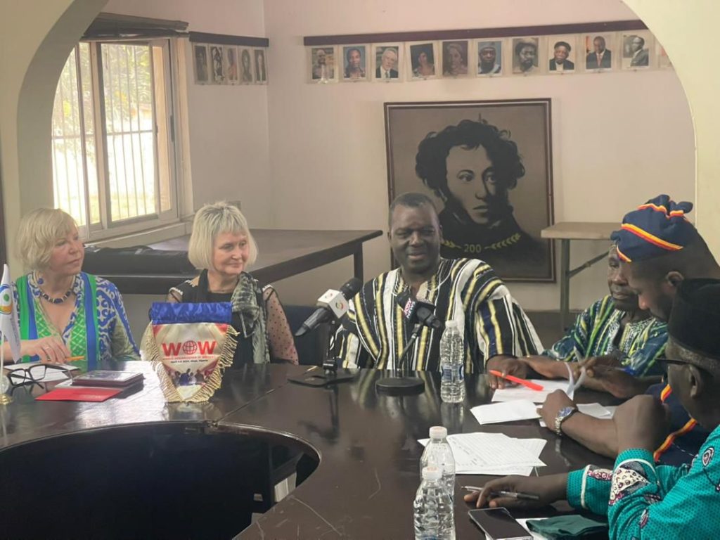 The two-hour meeting focused on exploring opportunities for cultural exchange between the creative communities of Ghana, Russia, and the world. The President of WOW expressed interest in promoting indigenous languages to enhance global literacy, stating, “Our work includes translations and publications. This year marks the 10th anniversary of languages in writing.”