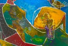 “بشفافيةٍ صلدة، يكشفون تحوّلاتٍ سرّية لحجارة الكون، وانبثاقاتٍ جديدة من نبض الفجر، من قلبٍ حجريّ كان يومًا مسكنًا للبرق؛ قبل أن تنبثق مياهٌ بلا شطآن تحت نورٍ عائم، لتصوغ نسيجًا من زهورٍ وحيوانات، وتبتكر وطناً.”