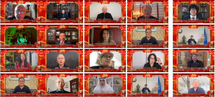 وتصدّر قائمة المتحدثين في الفيديو الشاعر الصيني تشاو شُوي، بصفته رئيسًا تنفيذيًا للاتحاد الدولي لطريق الحرير، ومنسقًا دوليًا لحركة الشعر العالمية، ومنسقًا لاتحاد كتّاب دول البريكس، ورئيس مهرجان بكين الدولي لأفلام الشعر، ومؤسس حركة «الشعرية الكبرى»، في دلالة على الدور المحوري الذي يضطلع به في دفع المشروع الشعري العالمي نحو آفاق أكثر اتساعًا. كما شارك عدد من الرموز الشعرية والثقافية البارزة، من بينهم الشاعر الصيني–الأمريكي هان غهيو، رئيس جمعية الشعر الصيني العالمي، والشاعر النيوزيلندي جي تشونشنغ، والروسي فاديم تيريخين، نائب رئيس اتحاد الكتاب الروس والمنسق العام لاتحاد كتّاب البريكس، إلى جانب شخصيات ثقافية دولية مثل ماكس لو، مؤسس ورئيس منتدى طريق الحرير العالمي التابع للأمم المتحدة.