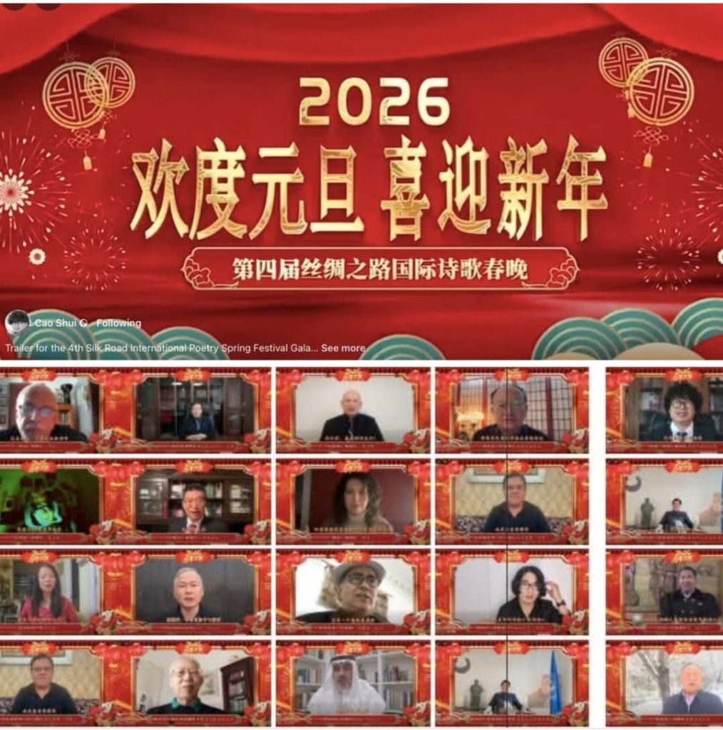 Also appearing were Max Lu, Founder and Chairman of the United Nations World Silk Road Forum; George Wallace, American poet and Chief Editor of Poetrybay; Kou Beichen, Professor at Genovasi University College, Malaysia; and Raed Al-Jishi, Saudi Arabian poet. From Australia, Zhang Lizhong, President of the Australian-Chinese Poetry and Art Association, lent his voice, alongside Dimitris P. Kraniotis, Greek poet.