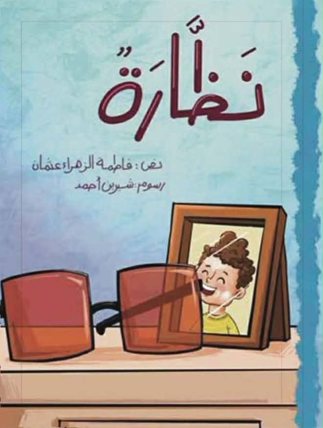 برسومات معبرة وذوقية للفنانة التشكيلية شيرين أحمد وبمتن كتبته القاصة فاطمة الزهراء عثمان كان نص” نظارة” كسردية علاجية لأطفال اليوم ناقشت وفحصت أكثر من مرض جسدي أو نفسي بلغة جميلة جذابة وأحداث تشد الطفل القارئ وخلف هذه السردية رسائل عدة وكمادات وضمادات عديدة تسبب فيها العالم الافتراضي وكيف غزا الدور والديار وعزل الأطفال عن محيطهم القريب بل وعمق غربتهم عنه وان انقطع التيار الكهربائي أو النات فتلك الطامة الكبرى كما حصل مع الطفل ياسر” تأففت ونفخت ثم تمتمت لا أريد أن أصعد لسطح البناية عادة لا أكون مرتاحا عندما يراني الناس“في سن توجب عليه أن يختلط برفاقه في الشوارع وفي الحي والمدرسة لتبادل الخبرات والأحاديث الخاصة وهذا ما حرم منه الأطفال