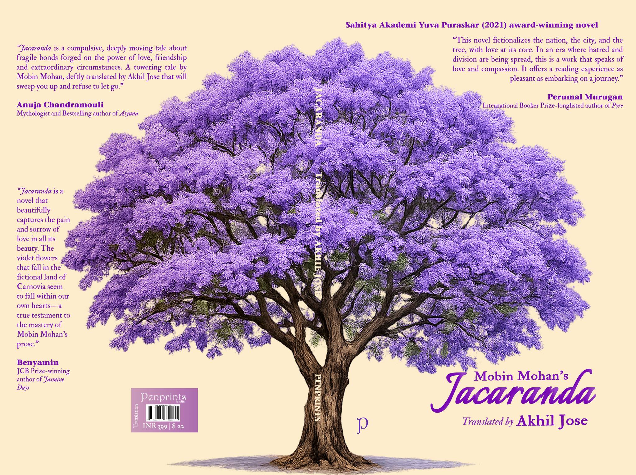 Jacaranda by Mobin Mohan, winner of the Sahitya Akademi Yuva Puraskar 2021, presented in English translation by Akhil Jose (cover by Supriyo Chakraborty).