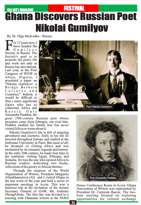 ثقافيًا وفنيًا، يحتفي العدد بالتجربة التشكيلية للفنانة الليبية سامية حنبولة، التي تعيد عبر أعمالها قراءة الزي التقليدي كلغة بصرية مشبعة بالذاكرة والزمن. كما يواكب مهرجانًا ثقافيًا في غانا أعاد اكتشاف الشاعر الروسي نيكولاي جوميليوف، بوصفه جسرًا ثقافيًا نادرًا بين أفريقيا وروسيا.