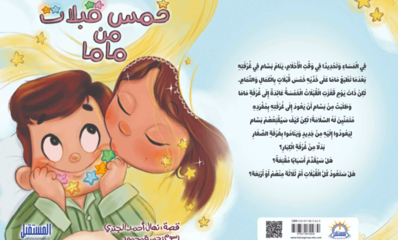 ها هي الكاتبة والقاصة نهال أحمد الجندي تمد الساحة الإبداعية والقصصية بجملة قصص مراكمة بذلك تجربتها الثرية كمواضيع مطروحة وكلغة سلسة معبرة ورسوم تساهم في إثراء المتن القصصي ومن ضمن القصص الأخيرة ” خمس قبلات من ماما “وأمنت الرسومات المعبرة والموجهة الفنانة التشكيلية حبيبة محمود لتطرح العلاقة الأسرية والتي نحتاجها اليوم أكثر من أي وقت والبارحة فالبارحة والأمس البعيد كانت الأم مرابطة بالبيت لا تعمل خارجه لها كل الوقت لتربية الأبناء ورعايتهم وتقديم كل النصح والتوجيه .