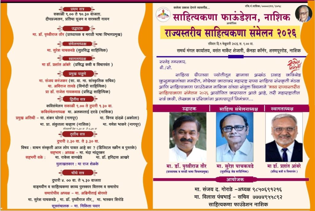 I declare the State-level Sahityakana Sammelan, organized by the Sahityakana Foundation Nashik, is open now.