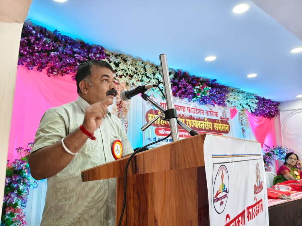 The President of this Marathi Literary Festival ( Sammelan) Respected Suresh Pachakwade; Dr. Prashant Ambre; the President of Sahityakana Foundation, noted writer Sanjay Gorade; the Secretary, my dear and kind-hearted writer friend Vilas Panchbhai; former presidents of this Festival Vijaykumar Mithe, Vivek Uglamugle; Sanjay Karajkar; Dr. Rajesh Gaikwad; Alaka Darade; Rakesh Wanakhede; Haridas Akhare; Ashwini Boraste; Bhaskarrao Shirode; Surekha Borhade; Rajendra Somvanshi; Pravin Jondhale; Nandkishor Thombare; poet friend Sagar Jadhav; Sureshrao Pawar; Ravikant Shardul; Kiran Sonar; Pratibha Jadhav; Umesh Gaydhani; Prof. Tushar Chandavdarkar; Dr. Dilip Dhondge, Jitendra Kunwar, Sayaji Shinde, Satish Malave, Gopalrao Patil, Kritika Marathe, Gurya Swami, Vasant Shahane, Ratnakar Shejwal, Rajendra Ugale, Prakash Holkar; writers, authors, poets, brothers and sisters,