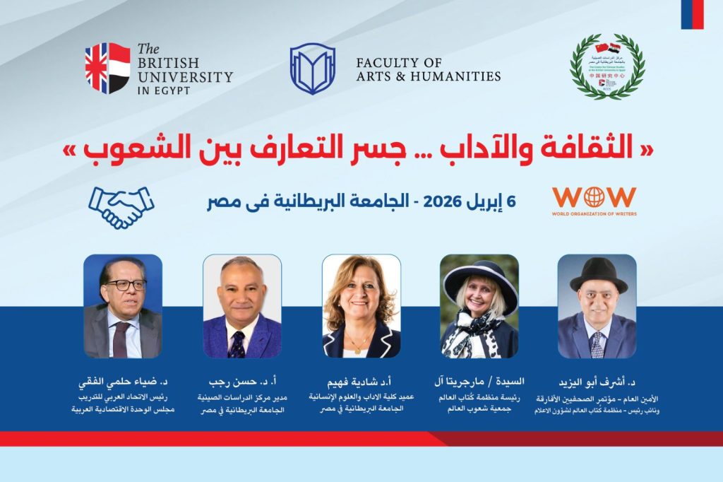 In a vibrant cultural scene reflecting Cairo’s dynamism and its historic role as a bridge between civilizations, the British University in Egypt hosted a high-level international symposium titled “Culture and Literature… A Bridge for Cooperation Among Peoples” on Monday, April 6, 2026. The event brought together a distinguished group of academics, thinkers, and creative figures from Egypt and around the world.