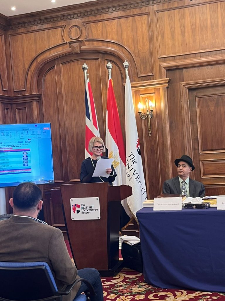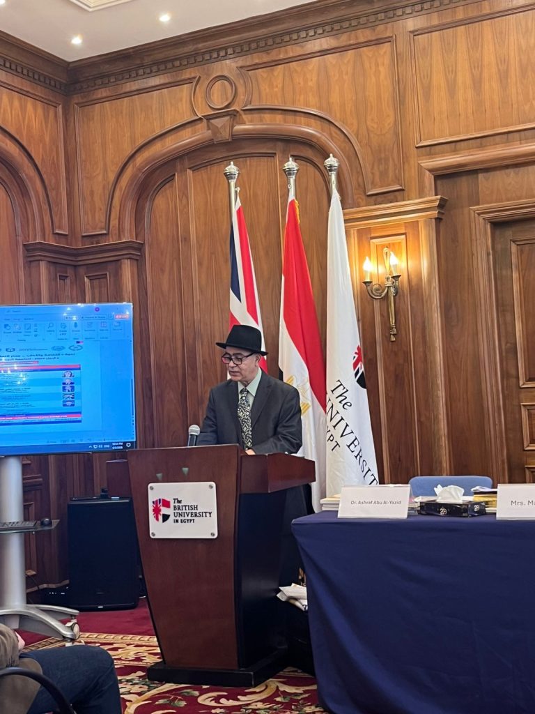 Within the framework of the international symposium “Culture and Literature… A Bridge for Cooperation Among Peoples,” hosted by the British University in Egypt, the cultural scene transformed into a moment of profound human celebration, reflecting values of appreciation and recognition for intellectual and creative figures who have contributed to strengthening cultural dialogue among nations. The award ceremony was led by Dr. Dyaa Helmy El-Feky, President of the Arab Union for Training, who presented commemorative shields to the participants—an act underscoring that culture flourishes through recognition of its pioneers. The shields bore the emblem of the Arab Union for Training and the Council of Arab Economic Unity.