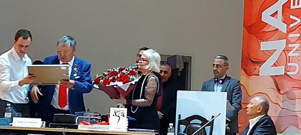 Margarita Al, President of the World Organization of Writers delivered an address emphasizing the enduring relevance of Suleimenov’s vision for intercultural understanding and literary cooperation. In her speech, she highlighted the importance of writers and intellectuals as bridges between nations and cultures in an increasingly interconnected world.